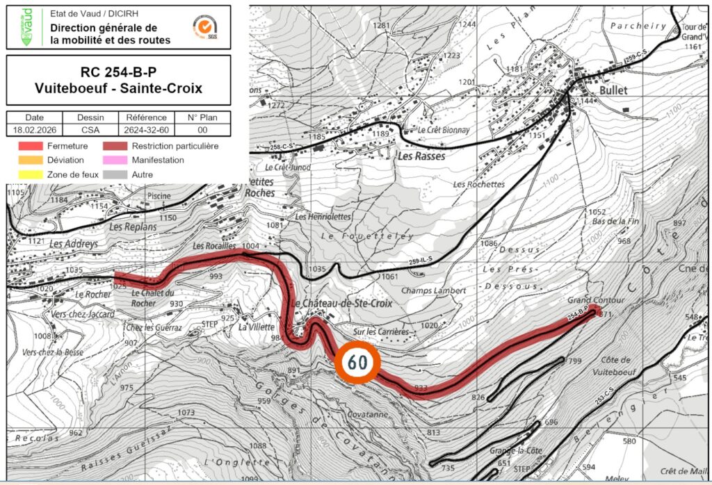 En raison de travaux de réfection de la chaussée entre Vuiteboeuf et Sainte-Croix, le